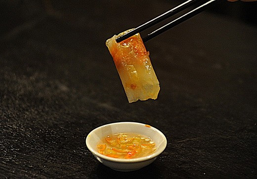 Bánh căn mê hoặc du khách không chỉ ở độ giòn, dẻo của bột mà còn là sự phong phú của các loại nước chấm làm từ cá tươi (mắm nước, mắm nêm, mắm ruột cá). Các loại nước chấm này phải pha nhạt để thực khách có thể nhúng cặp bánh nóng hổi, thơm lừng.