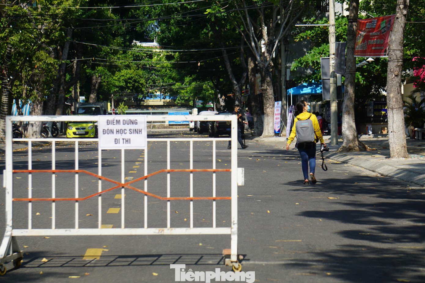 Phụ huynh học sinh được yêu cầu chờ đợi cách điểm thi 50m, đồng thời, đảm bảo giãn cách. Theo ông Trần Quốc Anh (quận Hải Châu, phụ huynh học sinh), cho hay: "Khi cho con thi giữa lúc dịch bệnh, gia đình cũng lo lắng. Sáng nay, khi nghe thông tin tất cả các mẫu xét nghiệm đều âm tính, tôi cũng yên tâm phần nào". Ảnh: Giang Thanh