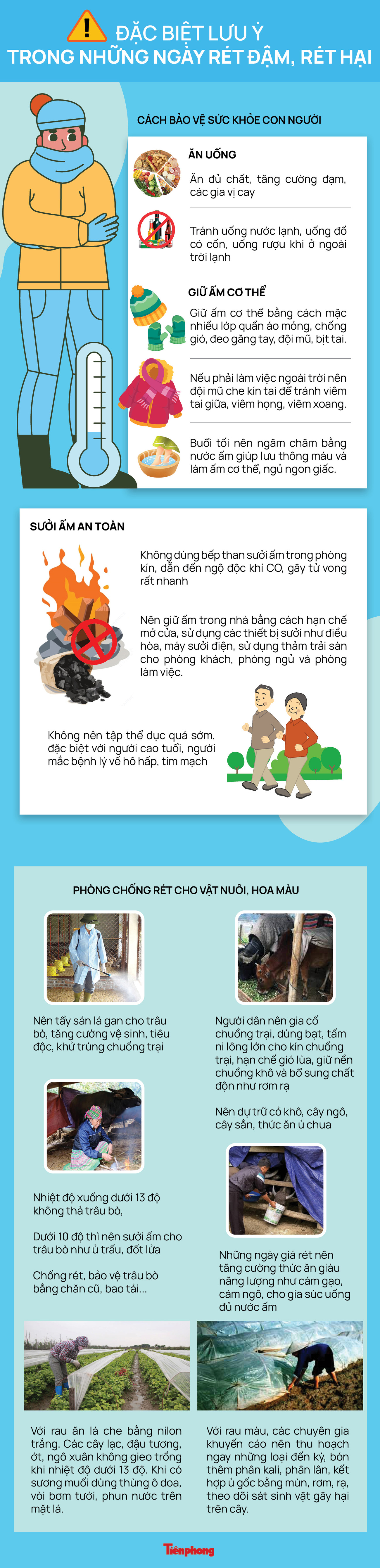 TPO - Không dùng bếp than sưởi ấm trong phòng kín, không uống rượu khi ở ngoài trời lạnh, không tập thể dục quá sớm... là những điều cần lưu ý trong những ngày rét đậm, rét hại.