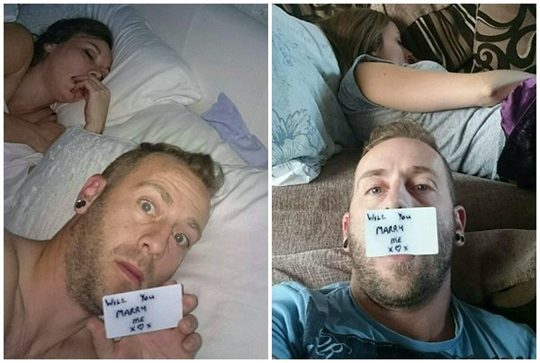 Bí mật chụp hơn 150 bức hình selfie với lời nhắn "Em lấy anh nhé?" trong 5 tháng, Ray Smith đã cầu hôn thành công bạn gái của mình - Claire Bramley. Đôi trẻ dự định kết hôn vào năm sau. Ảnh: Daily Mail.