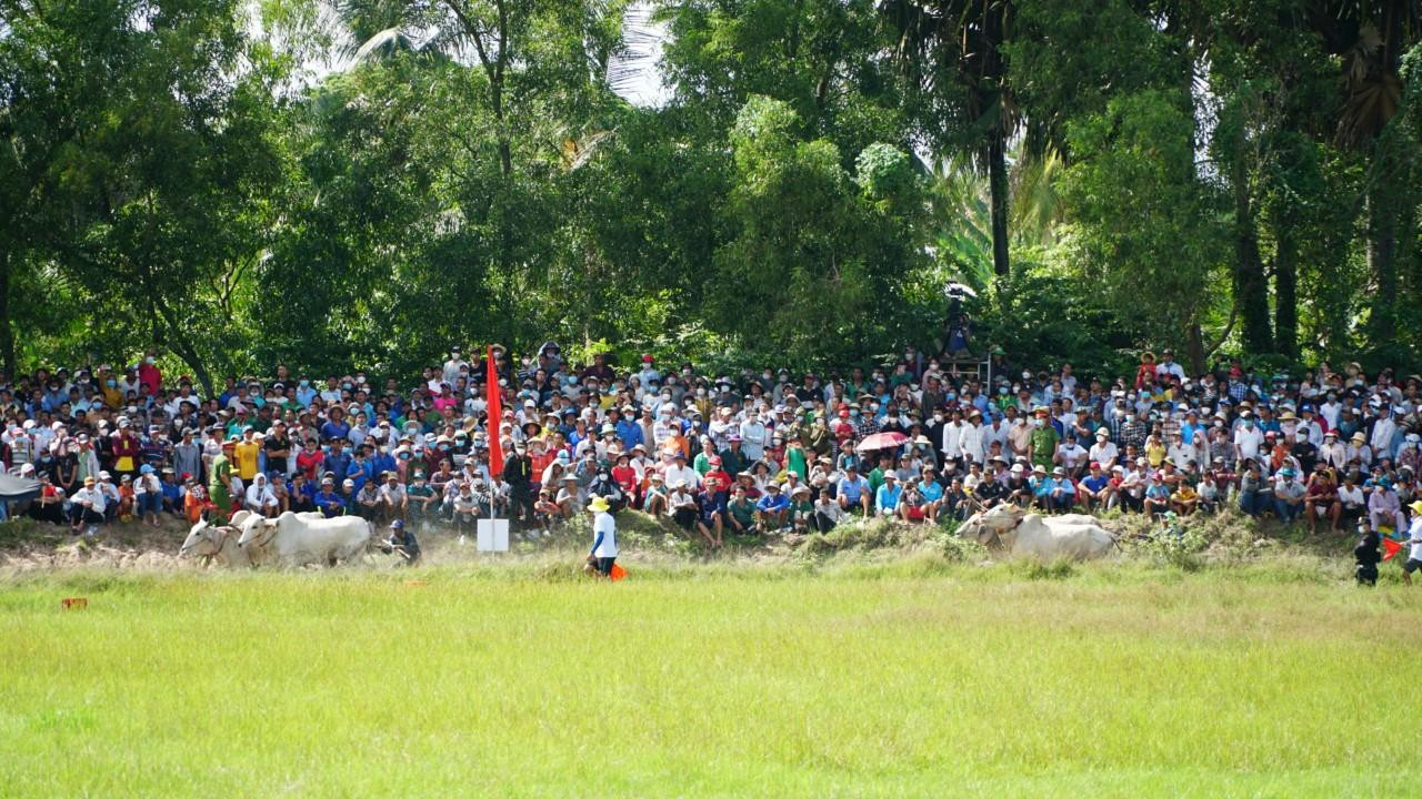 | Sân đua bò xã Vĩnh Trung (huyện Tịnh Biên, An Giang) thu hút hàng chục nghìn lượt khán giả đến xem và cổ vũ nồng nhiệt cho các "tuyển thủ". |