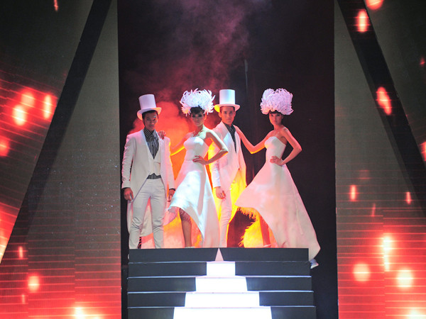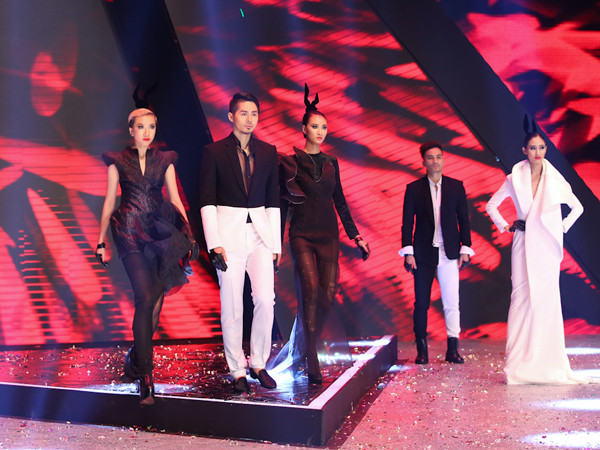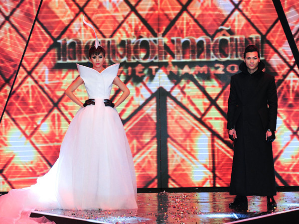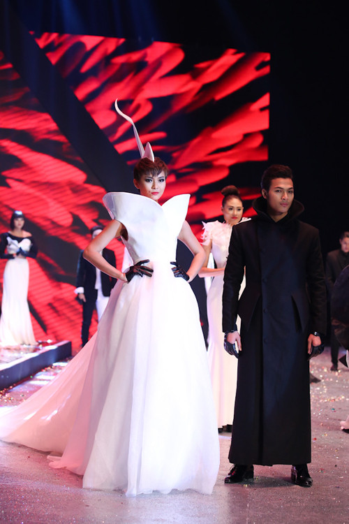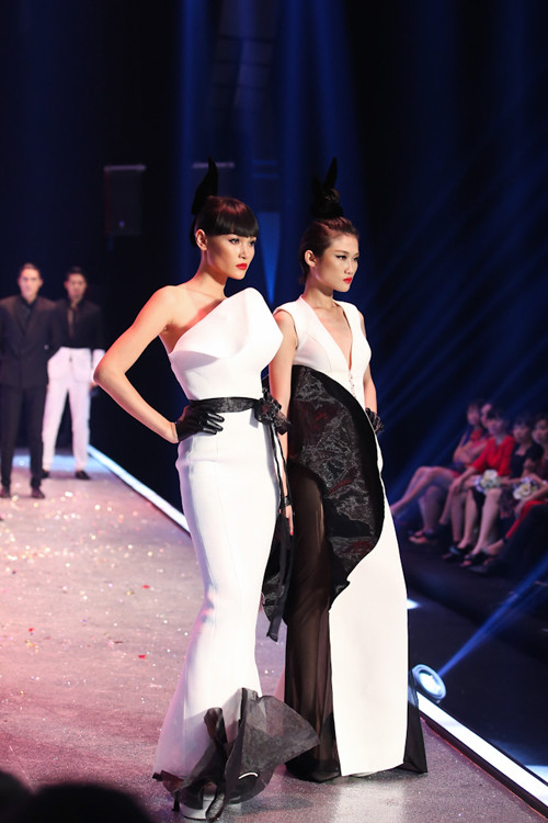 TPO - Các người mẫu đã cùng trình diễn những thiết kế mới nhất vô cùng ấn tượng của nhà thiết kế Hoàng Minh Hà trong đêm chung kết Vietnam's Next Top Model mùa thứ tư tối 22/12.