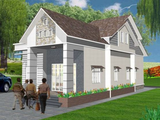 Mẫu nhà đơn giản với khung cảnh sân vườn sống động, hài hòa.