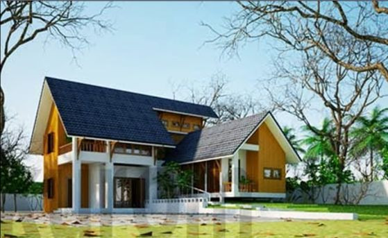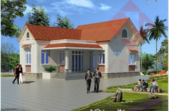 Đây là căn nhà được thiết kế kiểu mái thái ngói đỏ.