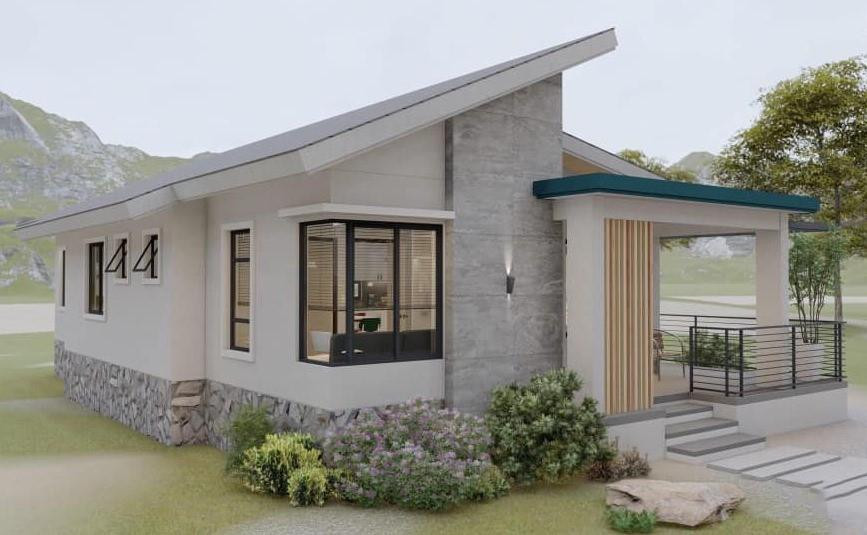 Đây là mẫu nhà phù hợp với những khu vực có điều kiện khí hậu khắc nghiệt như miền Trung Việt Nam. Bởi mái có độ dốc nhỏ chỉ từ 5 -8% nên sẽ giảm thiểu được sức ép của gió lớn, bão to cũng như tiết kiệm chi phí cho gia chủ. Hiện nay, mẫu nhà này thịnh hành với hai tông màu ngoại thất chủ đạo là trắng và xám đen.
