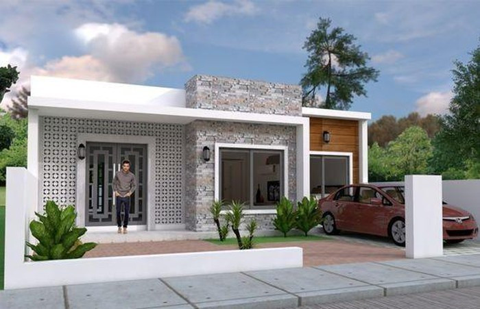 Chỉ với khoảng 400 triệu, gia chủ đã có thể sở hữu được mẫu nhà cấp 4 này. Với thiết kế đơn giản nhưng vẫn đầy đủ công năng, thi công nhanh và chi phí rẻ, mẫu nhà này phù hợp với gia đình trẻ mới ra ở riêng. Điểm nhấn của thiết kế nhà là mảng tường hoa gió và khối tường của phần phòng ngủ được ốp đá chẻ nhô ra.