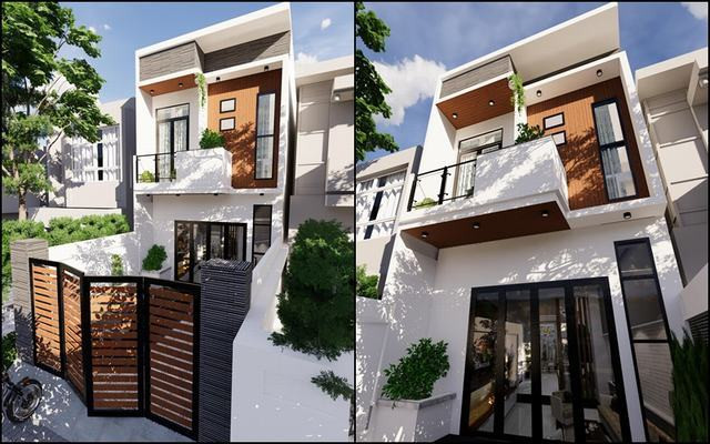 Đây là mẫu nhà ống đẹp có thiết kế khá tinh tế kết hợp dạng giống biệt thự mini với mái thái đổ ra giúp nhà thêm cân đối và sang trọng. Mặt tiền căn nhà nổi bật ở sự hiện đại với hệ thống ốp giả gỗ kết hợp với cửa kính nhôm sang trọng.