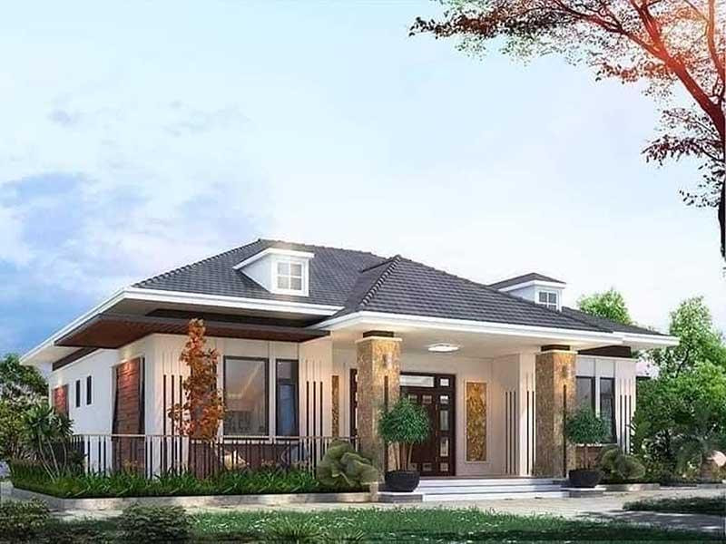 | Mẫu nhà mái Nhật 1 tầng với sân vườn rộng rãi, thoáng mát. |