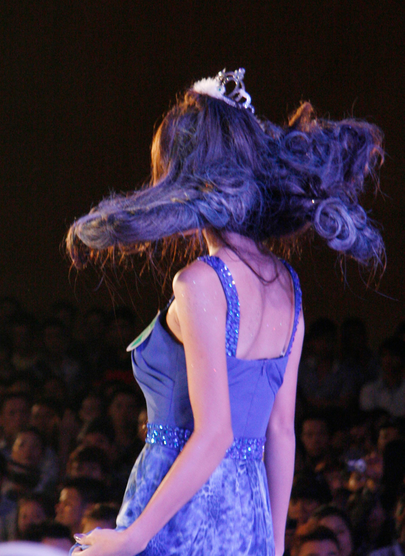 | Mẫu tóc sóng biển kết hợp với vắy công của nhà thiết kế Nguyễn Văn Tân. |