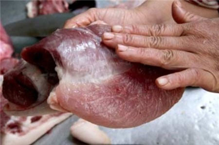 Ngoài ra, các bà nội trợ cũng cần lưu ý không nên mua thịt, mỡ có màu vàng (có thể lợn bị bệnh sắc tố; thịt lợn gạo (lợn bị nhiễm ký sinh trùng)... Những biểu hiện của lợn bị bơm nước là đường cắt bị rỉ nước nhiều, cơ dãn, thịt tái màu.