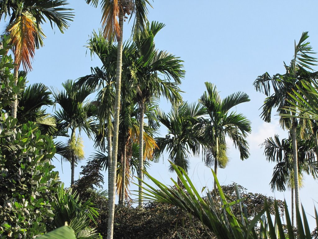 Mỗi lần ra vườn nhặt mo cau, hay tàu cau cho nội, tôi hay ngồi dưới tán cây cau, rồi đưa mắt nhìn lên bầu trời trong xanh. Những tán cau xanh biếc che mất đi một phần tư của khoảng trời xanh dương làm tôi cứ ngỡ bầu trời thu bé hơn một chút và tôi đang ngồi dưới mái nhà mà những tán cau đang che chở. Nhìn những cây cau im lặng để những đợt gió đu đưa, tôi nhớ mãi hình ảnh ba nằm trên võng lắt lẻo giữa hai cành cây cau, rồi để cho những tán cau ru ngủ những nỗi vất vả của một ngày dài làm lụng.