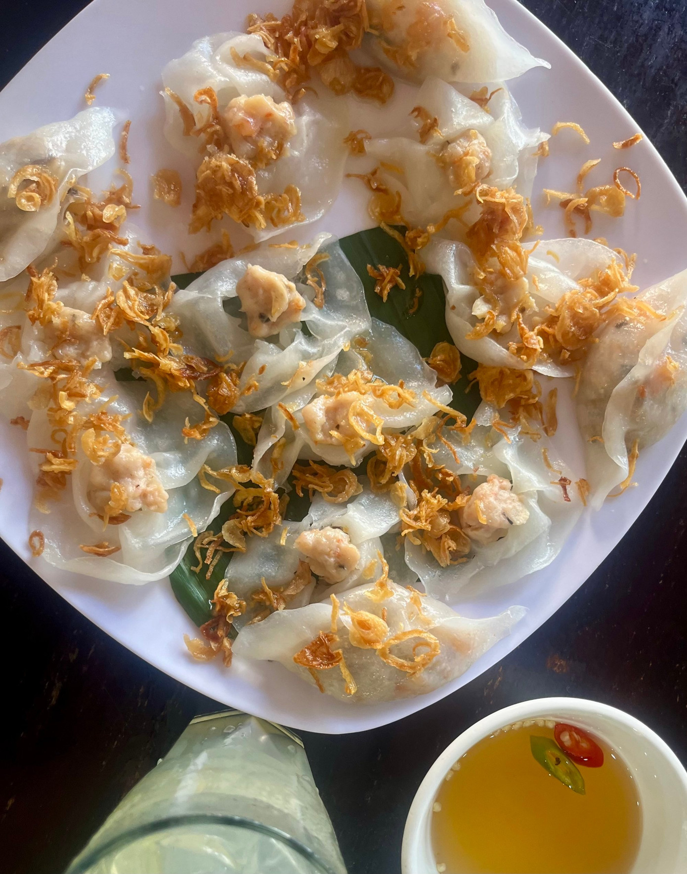 Món ăn này còn được biết đến với tên gọi "bánh bao hoa hồng trắng". Vỏ bánh làm từ bột gạo có vị ngọt, bùi, mặt bánh trắng, mỏng và mịn. Nhân chứa đầy thịt lợn hoặc tôm, được hấp lên để tạo nếp gấp. Loại bánh này ăn kèm với nước mắm và phủ hành chiên giòn lên trên sẽ rất ngon miệng