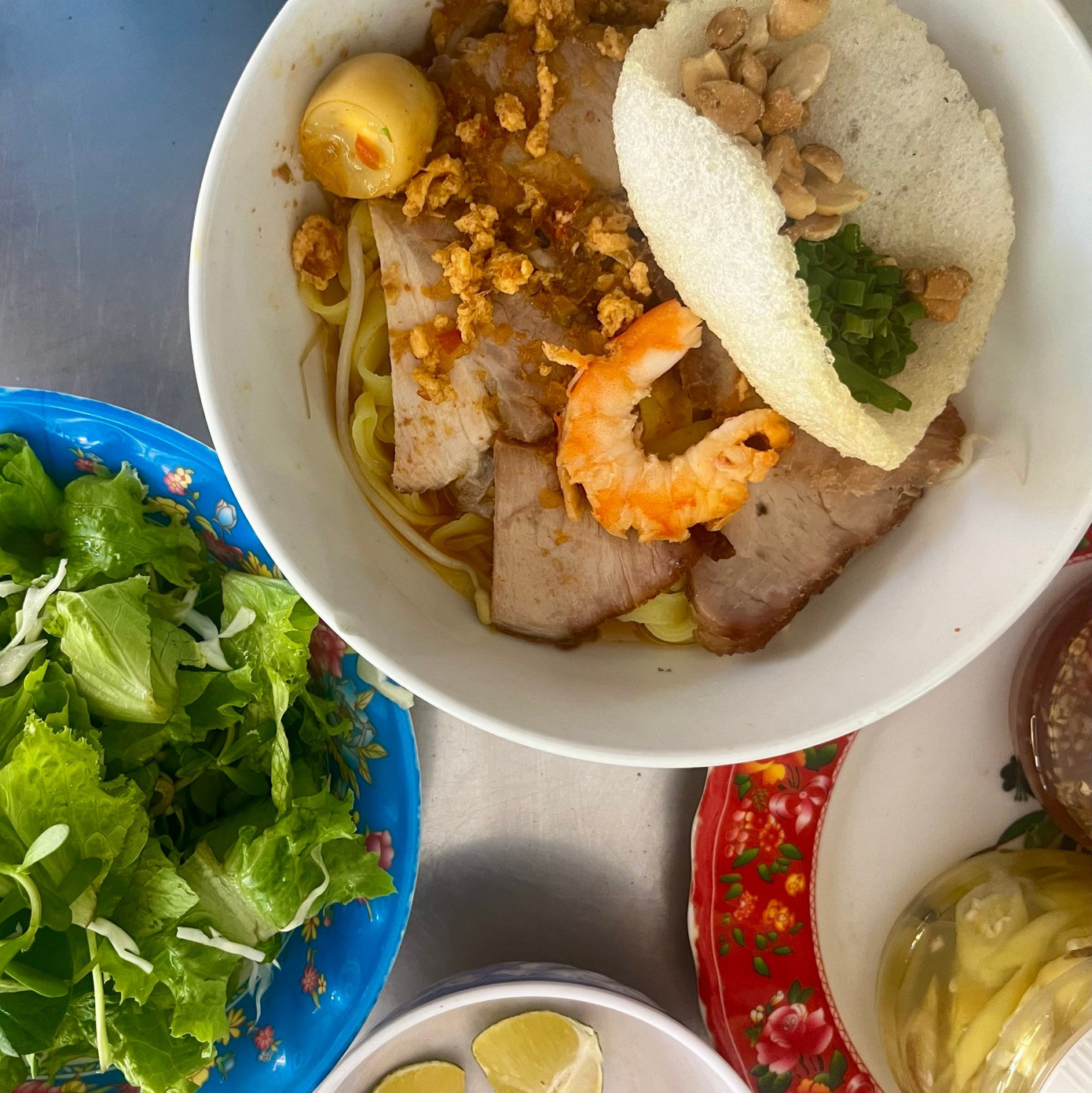 Mì Quảng có sợi mì dẹt, dai, ăn cùng thịt lợn, tôm, trứng cút, trang trí bằng lạc và bánh gạo. Các du khách nước ngoài cho biết nên thưởng thức món này cùng nước chanh dây tươi với tổng chi phí chỉ khoảng 60.000 đồng.