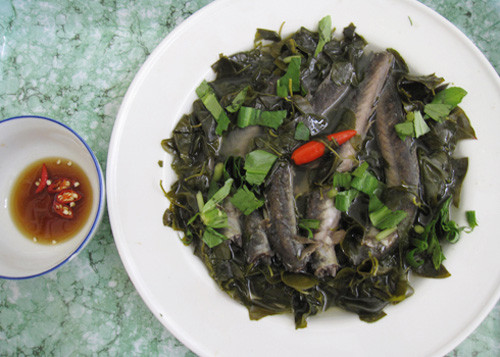 Cái béo của thịt cá hòa trong cái vị chua thanh của lá giang luôn đem lại những bữa cơm ngon miệng cho các thành viên trong gia đình.
