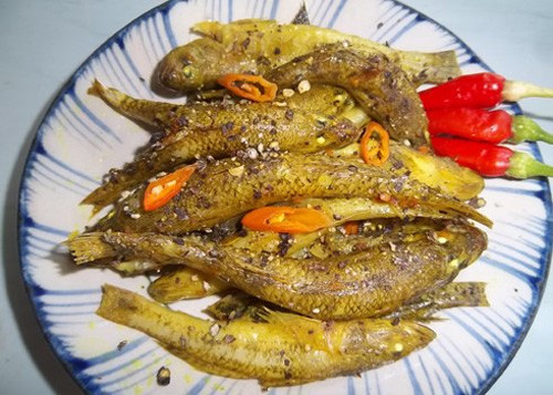 Những con cá chín vàng dậy mùi thơm của gia vị có thể ăn kèm với cơm nóng hay cháo trắng đều ngon miệng.