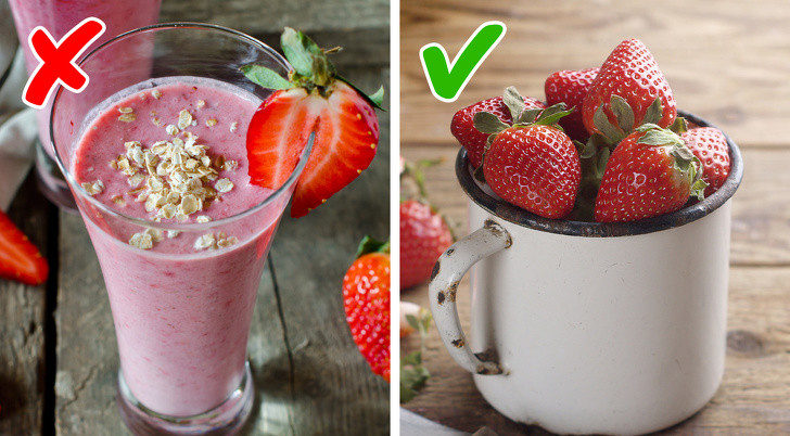 Thay vì uống nước hoa quả và sinh tố, ăn hoa quả tươi là tốt nhất bạn nhé! Kể cả nếu có thích làm nước hoa quả hay sinh tố thì cũng nên tự làm tại nhà thôi.