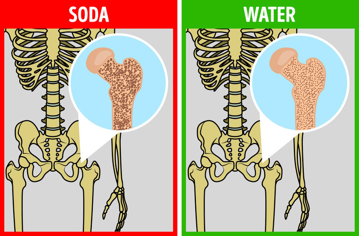 Soda vẫn bị coi là đồ uống không tốt vì chứa quá nhiều đường, thế nên nhiều nhà sản xuất đã làm ra loại nước soda không đường và không calo, để người mua có thể yên tâm hơn khi uống. Nhưng vấn đề ở chỗ, lượng phốt-phát có trong soda lại rất ít người để ý, mà chúng lại làm mất cân bằng khoáng chất cho xương, dẫn đến nguy cơ loãng xương nếu uống hàng ngày.