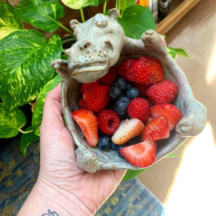 Với chiếc bát hình em hà mã giận dỗi thế này, bạn sẽ muốn ăn hết trái cây trong bát để em ấy hài lòng, nhỉ!