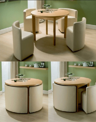 Khi không sử dụng, bộ bàn ghế có thể xếp gọn thành một khối chỉ tốn khoảng 1 m2 thay vì vài m2 như khi có khách.