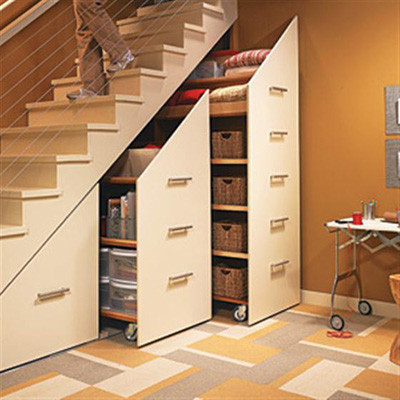 Gầm cầu thang là kho chứa đồ lớn đủ cất nhiều quần áo, chăn gối.