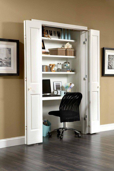 Chỉ từ một hốc tường nhỏ, chủ nhà bố trí thành nơi làm việc tiện dụng với nhiều ngăn để tài liệu, đồ trang trí.