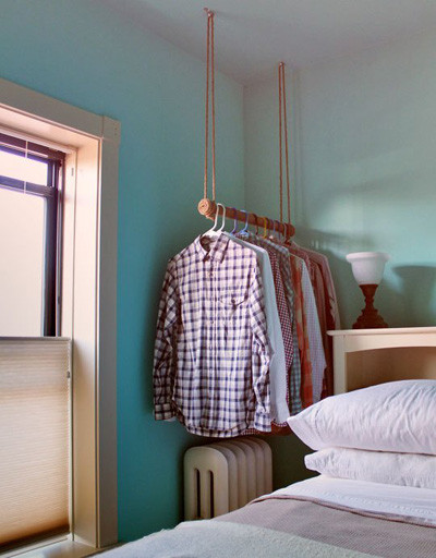 Nếu tủ áo của bạn đã quá chật, bạn có thể sáng tạo thêm những móc treo bên cạnh giường.