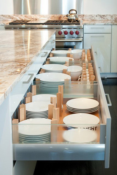 Nếu biết sắp xếp, bạn có thể cất được rất nhiều bát đĩa trong ngăn kéo hẹp.