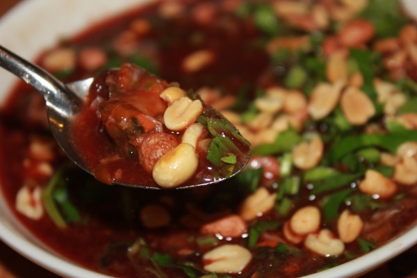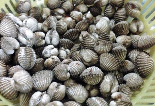 2. Tiết canh sò huyết: Đây là món ngon không thể thiếu mù tạt. Nguyên liệu: Sò huyết, chanh, mù tạt, ngò gai, ngò om, lạc rang. Sò huyết mua về phải còn thật tươi, ngâm trong nước để nhả hết chất bẩn, sau đó được chẻ đôi để lấy tiết từng con, rồi cho vào đĩa. Ảnh: 24h.com.vn.