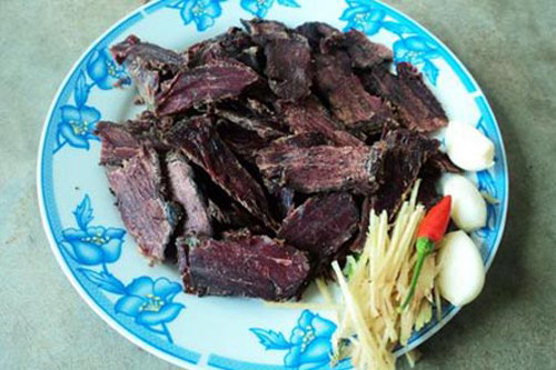 Bếp của người Tày, Nùng suốt ngày đêm lúc nào cũng có hơi lửa. Hơi lửa, hơi khói giúp cho thịt khô, săn cứng lại. Khoảng mười đến mười lăm ngày là đem xuống dùng được. Khi muốn mang xuống ăn phải ngâm trong nước nóng cho thịt nở ra, rửa sạch rồi thái ra thành từng lát mỏng. Chờ cho chảo nóng rồi đổ dầu vào, tiếp theo phi tỏi cho thơm rồi cho thịt vào đảo đều. Sau khi những lát thịt đã se se, đổ một ít nước vào om cho thịt mềm. Tỏi thì băm nhuyễn và gừng tươi thái chỉ đổ tất cả vào vào xào chung. Bây giờ thì hãy nêm gia vị cho vừa miệng và bây giờ chúng ta sẽ có đĩa bò gác bếp thơm lừng. Lát thịt bò có màu nâu đỏ, nhìn có vẻ khô nhưng lại rất mềm, hơi dai mà không bị xác, không bở, càng nhai càng thấy bùi.