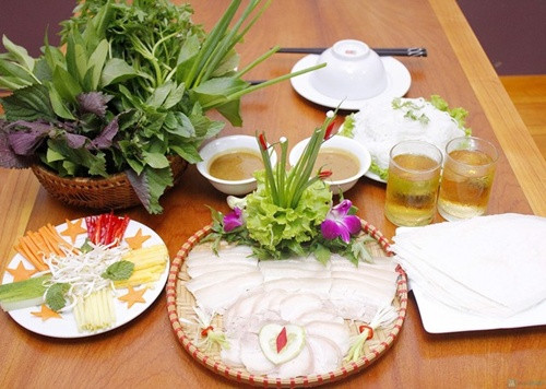 Nhằm tôn lên hương vị rất riêng của món bánh tráng phơi sương, người dùng sẽ ăn kèm thịt heo luộc cuốn cùng rau. Rau cuốn bánh rất phong phú như lá hẹ, diếp cá, lá cóc, tía tô, húng quế, lá săng dẻ, tràm ổi...kèm theo dưa chuột, giá sống. Miếng cuốn đậm đà hương vị với béo ngậy thơm của thịt heo, vị chua chát của các loại rau hòa cùng chút chua ngọt đậm đà của mắm nêm.