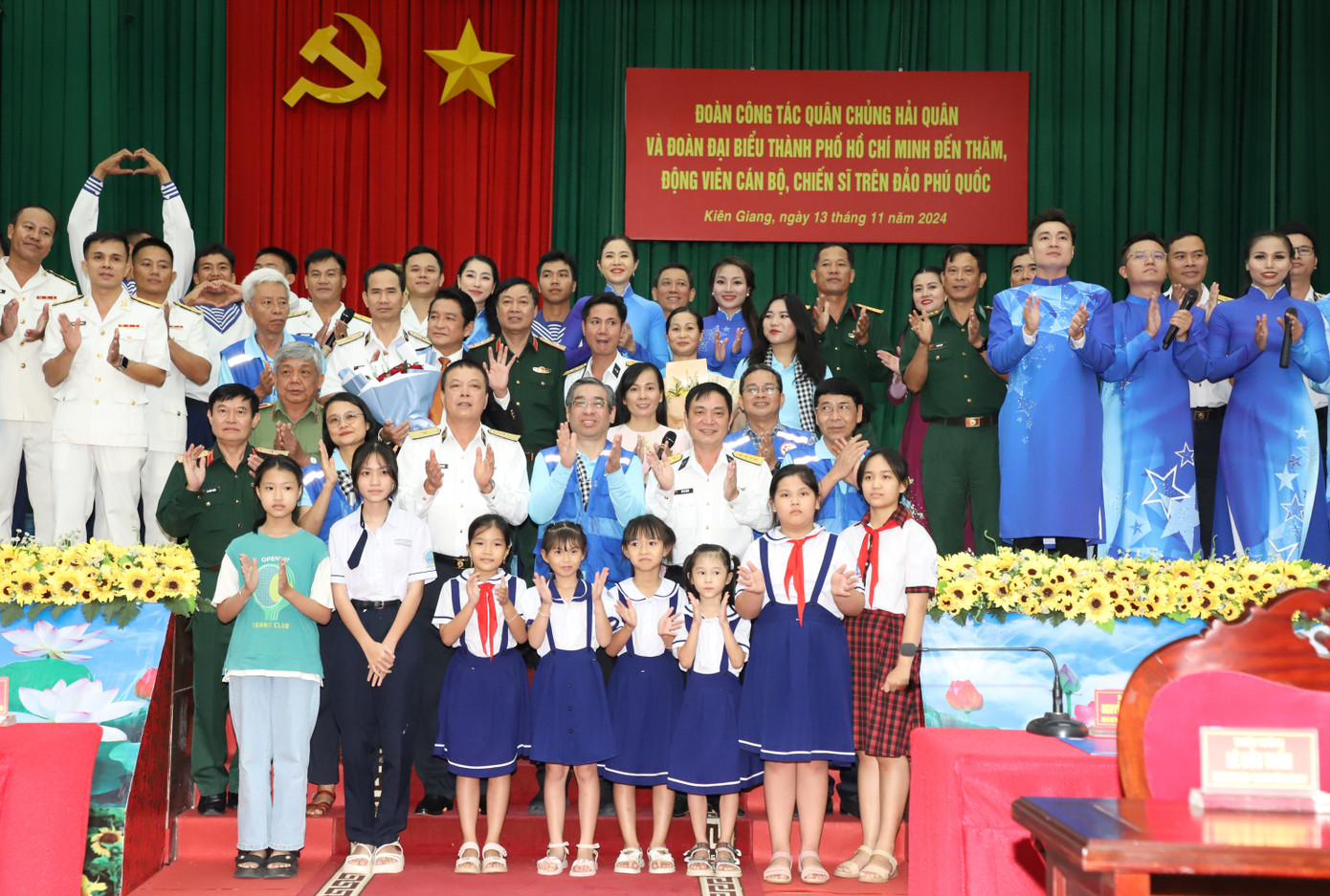 Chiều 13/11, tiếp tục chuyến công tác đến các điểm đảo, Nhà giàn DK1/10 trên vùng biển Tây Nam của Tổ quốc năm 2024, đoàn đại biểu TPHCM, Quân chủng Hải quân đã đến thăm, động viên cán bộ, chiến sĩ trên đảo Phú Quốc (TP. Phú Quốc, tỉnh Kiên Giang).