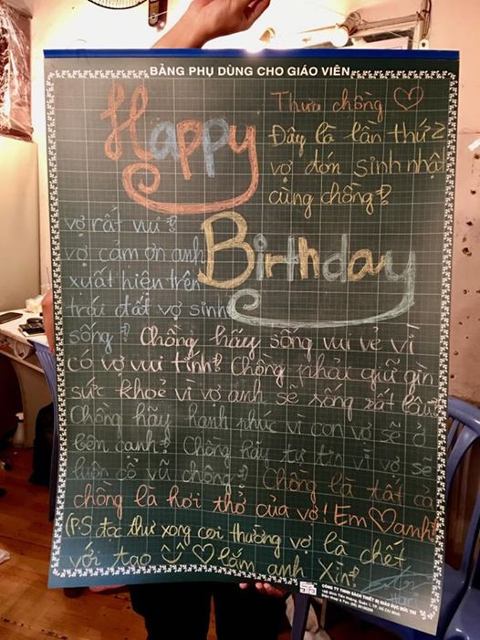 Ngoài ra, giọng ca Anh cứ đi đi còn chuẩn bị thêm một bức tâm thư viết trên bảng lớn có nội dung vô cùng hài hước: "Thưa chồng, đây là lần thứ hai vợ đón sinh nhật cùng chồng. Vợ rất vui. Vợ cảm ơn anh đã xuất hiện trên Trái Đất vợ sinh sống. Chồng hãy vui vẻ vì có vợ vui tính... Chồng là tất cả, chồng là hơi thở của vợ! Đọc thư xong coi thường vợ là chết với tao. Yêu lắm anh Xìn".