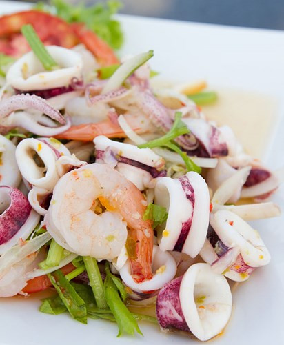 Yam là một loại salad phổ biến nhất của ẩm thực Thái Lan. Món ăn hấp dẫn bởi sự hoà quyện của vị chua, mặn ngọt, kết hợp cái dai dai của mực tươi và vị cay nồng rất đặc trưng của Thái.
