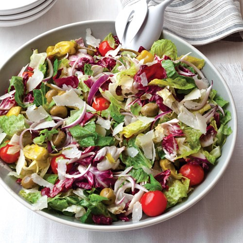 Theo truyền thống, món salad này được dùng với vang hồng, trắng và đỏ.