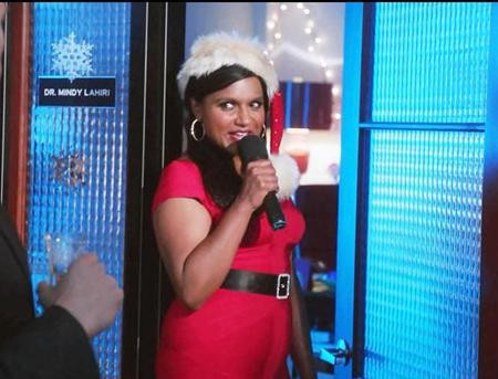 Ngôi sao truyền hình Mindy Kaling cũng tự tin diện trang phục của ông già Noel