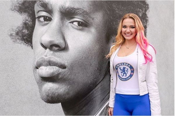 Cô gái người Mỹ sống tại Anh có tên Emily Rogawski được gọi là “mỹ nhân hâm mộ cuồng nhiệt Chelsea” khi tình cờ lọt vào ống kính máy quay khi tới SVĐ theo dõi cuộc đối đầu giữa Chelsea với MU. Trang Instagram của cô cũng tràn ngập hình ảnh liên quan đội bóng thần tượng và đồng thời có lượt theo dõi tăng lên đáng kể sau khi “nổi tiếng”. Ảnh: Instagram NV.