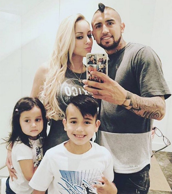 Tiền vệ tuyển Chile, Arturo Vidal hạnh phúc bên cạnh bà xã Maria Teresa Matus và hai con.