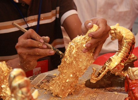 Làng Kiêu Kỵ nay thuộc huyện Gia Lâm (Hà Nội) có lịch sử trên 400 năm và là làng nghề duy nhất ở Việt Nam chuyên làm vàng quỳ (vàng lá, dùng để dát). Hiện làng nghề có gần 50 gia đình chuyên kinh doanh vàng quỳ, nhiều hộ sản xuất với quy mô lên tới 20 thợ làm việc. Một chỉ vàng ở Kiêu Kỵ có thể được dập thành gần 1.000 lá, khi xếp lại có diện tích lớn hơn 1m2. Những sản phẩm này hầu hết cung cấp cho các công trình tín ngưỡng cung đình để dát lên các tượng phật, ngai vàng, hoành phi, câu đối và cả tranh sơn mài.