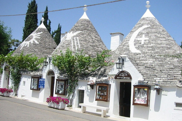 Các ngôi nhà ở đây được xây dựng từ đá vôi, được xếp chồng lên nhau mà không cần vữa (hồ). Mái nhà thường có hình kim tự tháp, hình vòm hoặc hình nón từ thế kỷ thứ 14. Ngôi làng Alberobello được UNESCO công nhận là di sản văn hóa từ năm 1996.