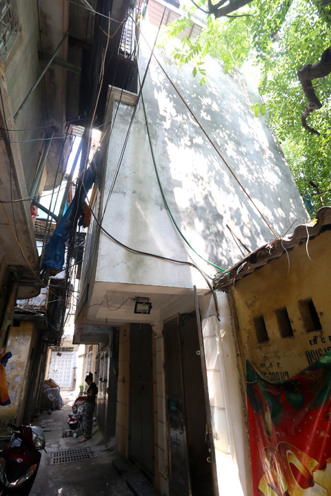 Việc đi lại, lên xuống giữa các tầng đều sử dụng chiếc thang di động. Một số người dân cho biết, khu vực này ngày trước là đất lưu không, một phía giáp cơ quan nhà nước, một phía giáp đường. Sau khi bị cắt một phần đất, mỗi nhà chỉ còn diện tích vài m2. "Nếu không xây để cũng phí, thậm chí con cái không có chỗ ở, mà bán không có sổ cũng chẳng ai mua", một người dân phân trần.
