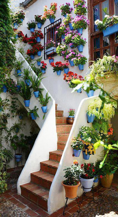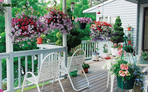 Dù nhà không có sân vườn, bạn vẫn có thể làm đẹp ban công, mặt tiền nhờ những giỏ hoa treo hay bồn cây nhỏ xinh xắn.