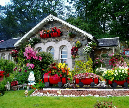 Bạn cũng có thể thuê người thiết kế cho khuôn viên sân vườn với các ý tưởng cụ thể như đoàn tàu hoa chạy quanh nhà.