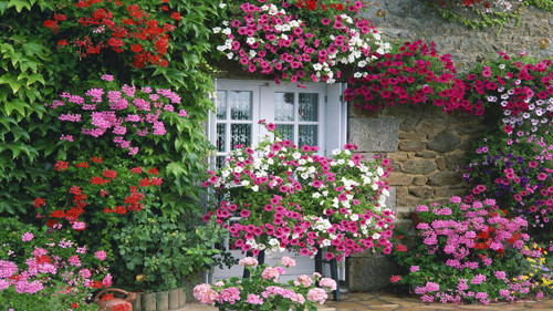 Những ngôi nhà rực rỡ sắc màu nhờ các giỏ hoa