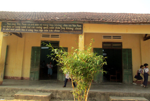 Một dãy phòng học cũ tận dụng làm nhà để xe cho học sinh tại một trường học trên địa bàn xã Vĩnh Quang, huyện Vĩnh Thạnh (Bình Định).
