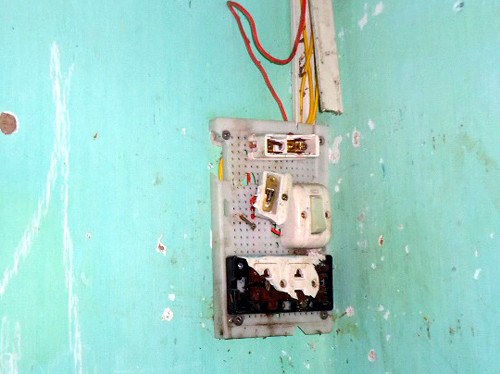 Ổ cắm điện bị hỏng... Điểm trường Hải Giang thuộc diện quy hoạch di dời nên không đầu tư xây mới, thời gian di dời chưa cụ thể trong khi thầy trò học sinh ngày ngày vẫn phải đến trường trong nỗi lo trường sập.