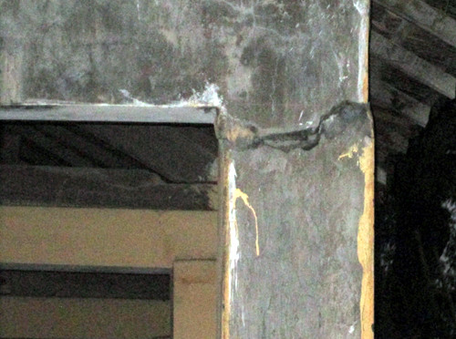 Ngay cả cột lớn cũng bị nứt toác. "Đối với những phòng học xuống cấp không còn sử dụng, ngoài việc cảnh báo, quán triệt học sinh, nhà trường phải có rào chắn ngăn học sinh đi vào khu vực nguy hiểm", Trưởng phòng Giaó dục và Đào tạo huyện Tuy Phước Trần Hữu Tường cho biết.