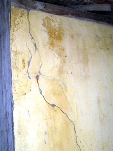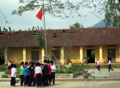 Ngoài trường Tiểu học số 2 Phước Lộc - phân hiệu Đại Tín vừa xảy ra tai nạn sập cột đỡ mái che dãy phòng cũ đè chết nam sinh lớp 4, Bình Định còn nhiều trường học cũ nát. Tình trạng xuống cấp, xập xệ khiến thầy trò vừa học vừa lo. Trong ảnh là trường Hải Giang với trần nhà bị hư hỏng, tường bị bong tróc nham nhở.