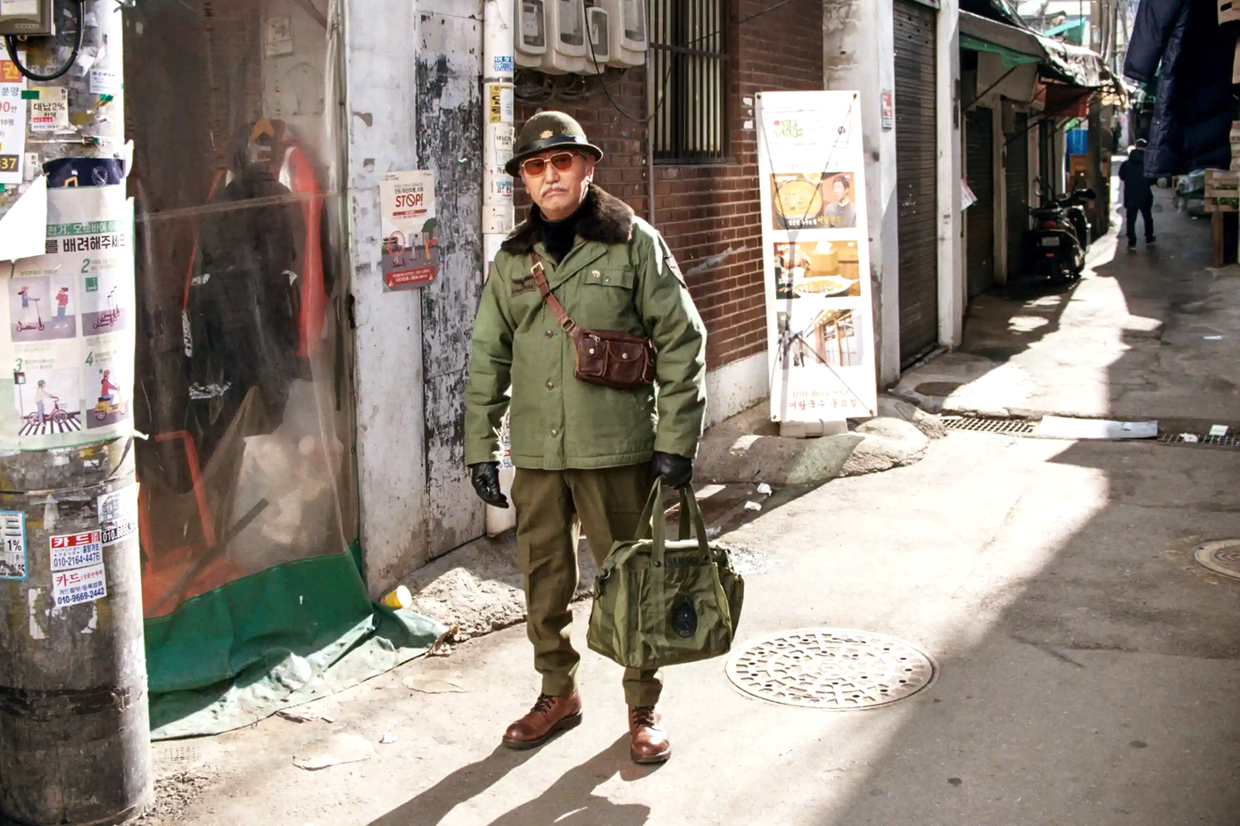 Trong số những người cao tuổi ở Dongdaemun có ông Lee Seok-ki, thành viên của một nhóm được gọi là “đoàn quân đội”. Nhóm bao gồm ba người đàn ông với những phong cách khác nhau: ông Lee thích phong cách quân đội truyền thống tối giản, trong khi những người bạn của ông ấy thích cải tiến phong cách quân đội theo hướng hiện đại hơn, trang trí quần áo bằng những mảng thêu đầy màu sắc và huy hiệu.