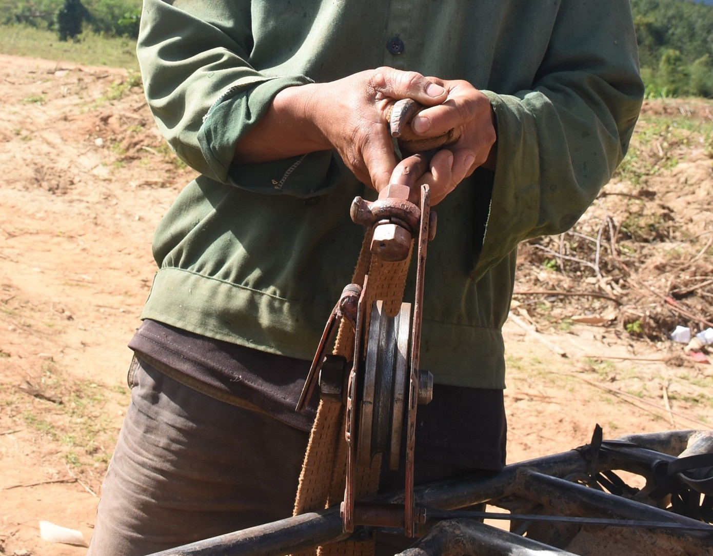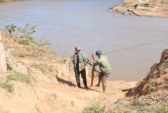 Anh Nguyễn Văn Đại (xã Đắk Ang, huyện Ngọc Hồi) cho biết, nhiều khi đi qua bằng cách này dây cáp bị chùng, mắc lại giữa sông phải dùng tay trần kéo dần từng đoạn vào bờ