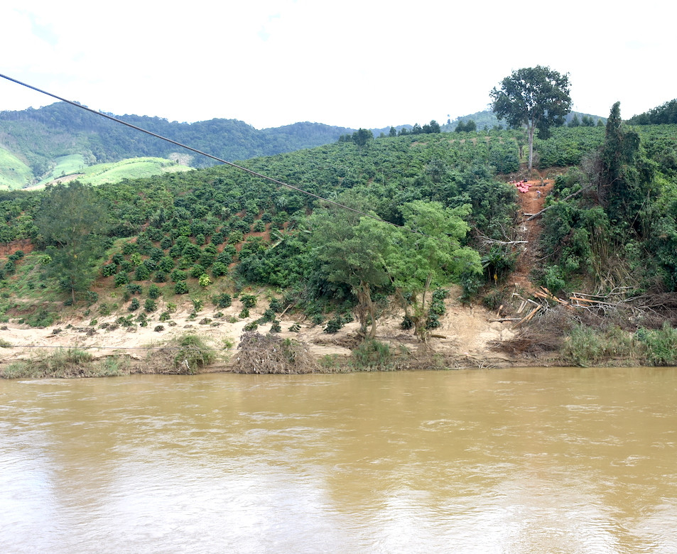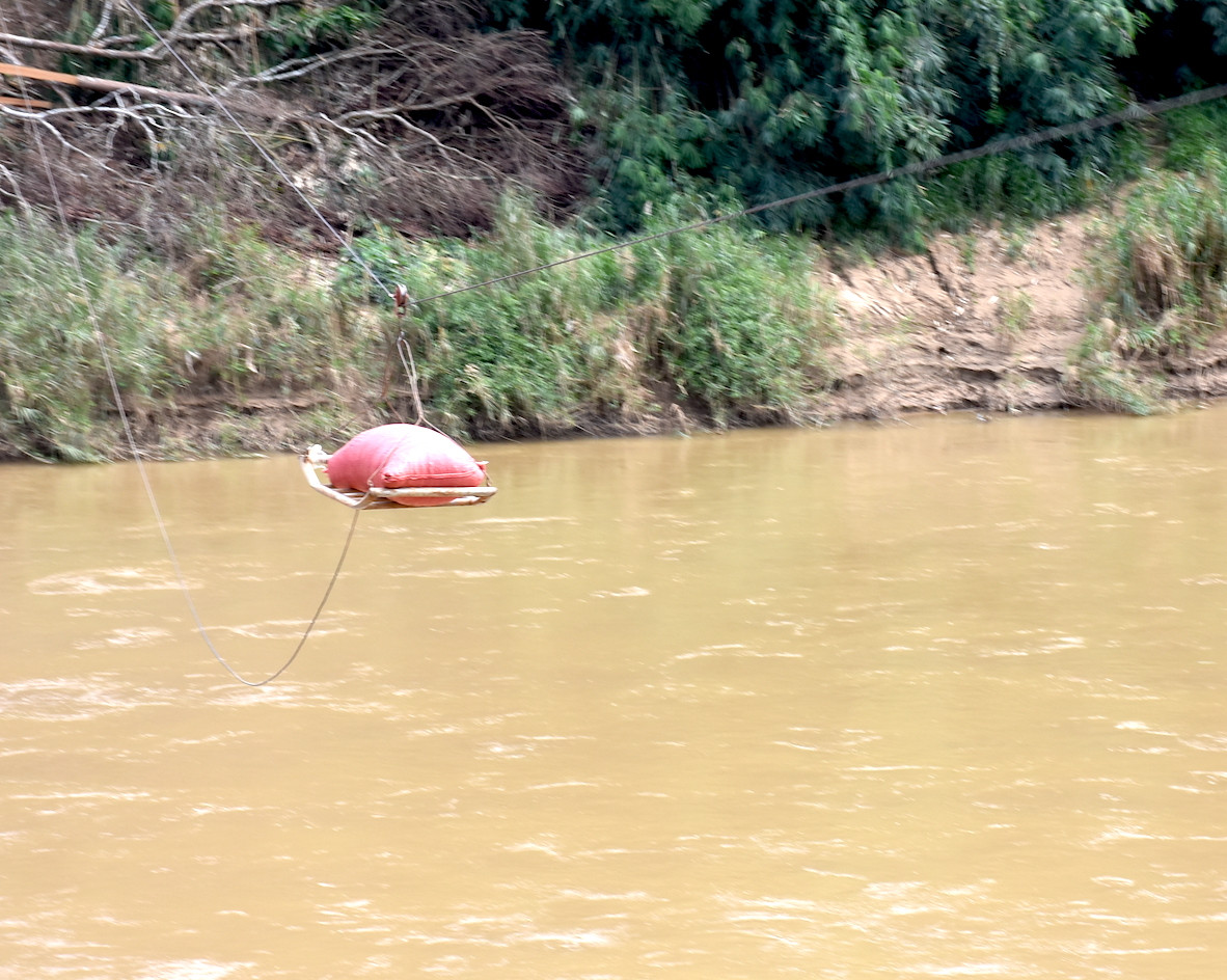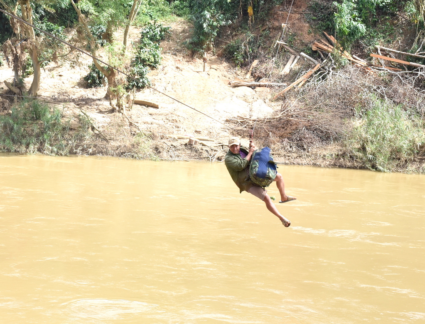 Cầu treo Tà Pook - Kà Nhảy (xã Đắk Nông) bị nước lũ cuốn trôi, giờ người dân phải mua dây cáp và ròng rọc (khoảng 400 nghìn đồng một bộ) rồi cố định hai đầu, đu qua sông Pô Cô thu nông sản, hoa màu